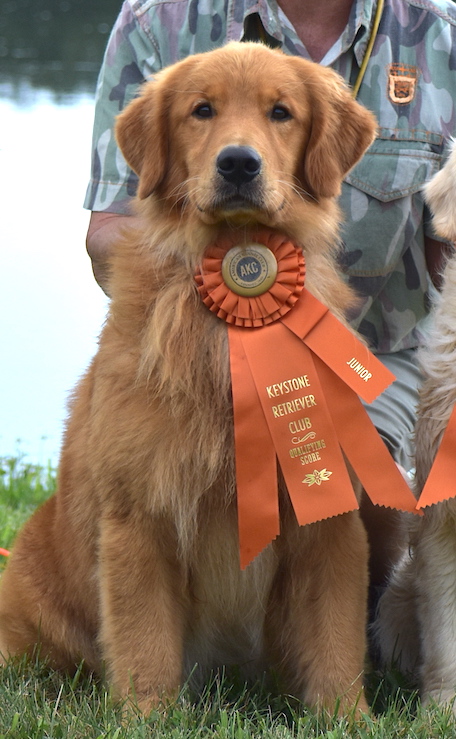Guy is a fun loving, bright, active dog. He is sired by my old stud dog, Bang, via frozen semen. He is tons of fun to train - he is very smart and quite motivated to work. Guy earned his SH in April '23. Generallyl he has been trained by me, but he went off for a couple of months with pro, Beth Sokohl, and passed his last two SH tests on one day. He earned his CD in Aug '22 and is training for his CDX. Guy has won a major RWD and passed his CCA.