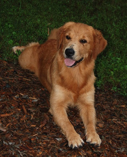 Tease is a self exerciser and keeps her self in very hard condition. She has a lovely head, jet black pigment, beautiful dark golden coat and a fun loving temperament. A very fun dog to train and a snuggler in the evenings. She is one of our favorites!