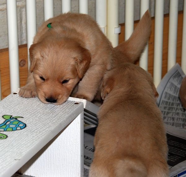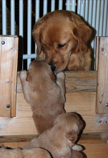 Cutie is a Cricket daughter. Cricket has been a tremendous producer of great looking working and performance dogs. Cricket quickly became an GRCA outstanding dam from the titles earned by the pups in her first litter. Cutie's father is the wonderful CH HR Highmark Bad News Bears CDX SH AX AXJ OF WCX SDHF OS VCX(Coach). Coach is one of my all time favorites - producing beautiful, athletic dogs with a great sense of humor.