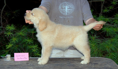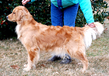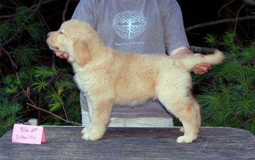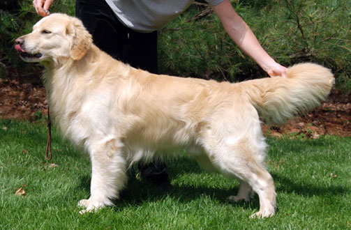 Dalton is a lovely, blone boy owned by some good friends in York, PA. He is the result of a litter sired by frozen semen of a dog who died in 2000. He is a very good natured, great moving boy.