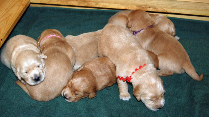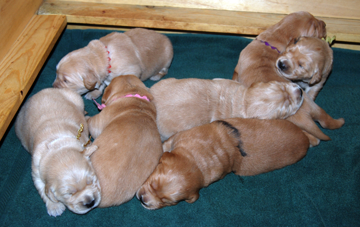 Mia is a good sized girl who is very happy go lucky. She is a darker medium in color. These puppies are a range of medium colors with a couple lighter ones.