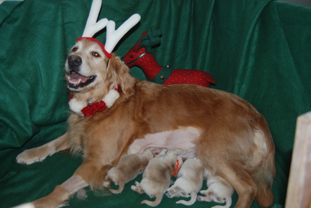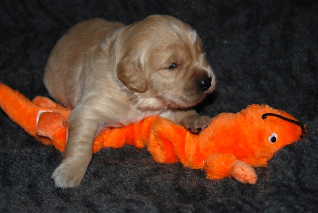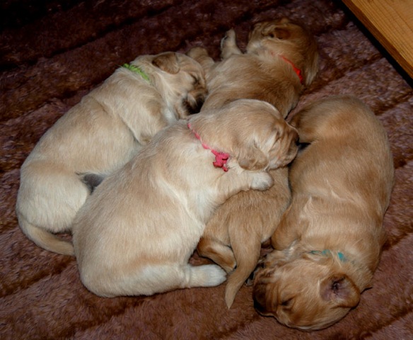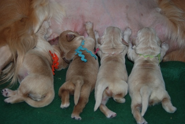 The pups from this litter should be exceptional. The pedigree is quite outcrossed so there should be a range of styles in the litter, ranging from typical American show goldens to more English type. The pups should be very bright and trainable and be able to compete in multiple venues easily.