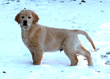 Bling is the product of a predominitly "show " breeding, though her pedigree has dogs that are not particularly common in todays's conformation dogs. She also has a goodly number of performance titled dogs behand her. Her sire, Coach is a beautiful dog who was ranked in the top 10 golden retrievers in 2007. He also has his SH. . Bling's mother, CH Lycinan's Give Me Liberty CD very quickly earned her CH going WB at Lenape GRC over more than 90 bitches. Bling earned her WC on her first try in Nov 2007 and has just recently earned three Junior Hunter legs. She will finish her JH in the spring and continue field training. Bling is an active, bright dog. Littermate to Lycinan's Making the Grade CD, RN (HIT).