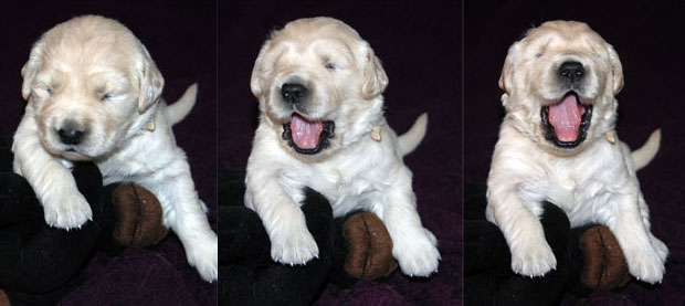 Pups are identified at birth by a piece of ribbon. They are now called by the ribbon color.