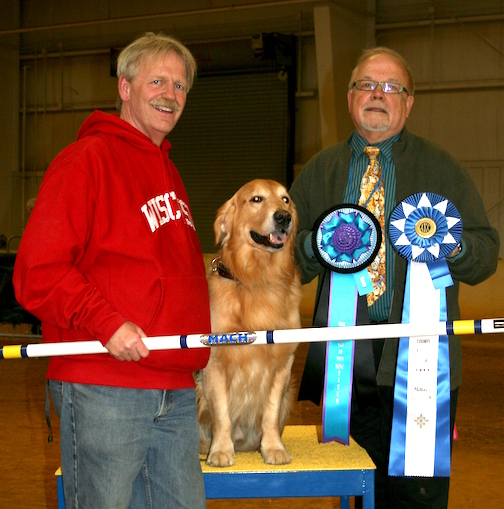 Tucker earned nine titles in the first 13 months of trialing in obedience and agility. He accomplished all this with his novice handler and owner. He also shows strong natural ability in early retrieving training. Don has had such a good time with Tucker, he wanted to share his joy of Agility by becoming an AKC Agility Judge. Congratulations, Don!!