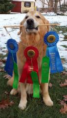 Tucker is an enthusiastic dog - smart, eager to learn and please, and a great companion. He is a very strong swimmer and loves retrieving bumpers or balls.. He is a Canine Good Citizen and a Registered Therapy dog. Though he has tons of energy and enthusiasm for training and exhibiting, he can temper it for obedience trials and at home as a wonderful housedog.